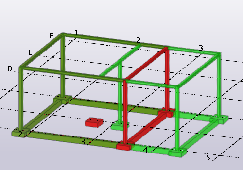 Los objetos de modelo están codificados por color según los cambios realizados. La versión más reciente de un objeto se muestra en verde, mientras que la versión anterior se muestra en rojo. Si el objeto es el mismo en ambas versiones, se muestra en amarillo o naranja, dependiendo de la opción de renderizado.