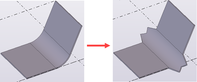 Puede devolver las placas plegadas a sus objetos individuales y, a continuación, editarlas y utilizarlas igual que cualquier otro objeto de modelo. Si la placa plegada consta de varias secciones curvadas que se unen en la misma parte, puede eliminar cada sección curvada por separado o desglosar la placa plegada completa a la vez.