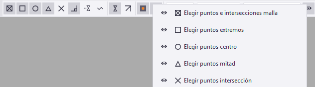 Puede personalizar las barras de herramientas Selección, Elección y Anular elección ocultando algunos de los conmutadores. Puede personalizar las barras de herramientas tanto en el modo de modelado como en el de dibujo.