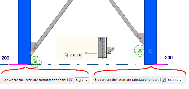 | Cálculo de niveles | Seleccione la línea de referencia utilizada para colocar el arriostramiento cuando las partes principales no son paralelas. |