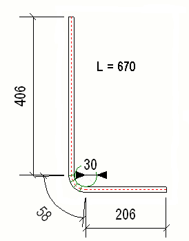 Por ejemplo, para tener en cuenta el radio de plegado y para calcular la longitud a lo largo de la superficie exterior de la armadura, haga lo siguiente: