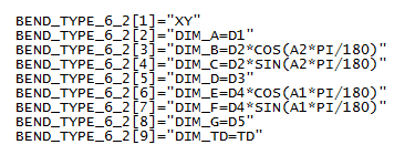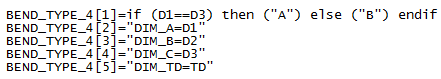 El siguiente ejemplo asigna el tipo de plegado interno 4 al identificador de tipo de plegado A si las dimensiones D1 y D3 son idénticas. De lo contrario, asigna 4 a B.
