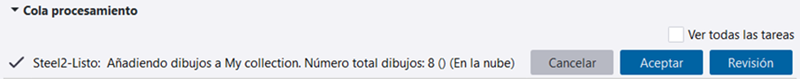 El nombre del botón OK de la cola de procesamiento, mostrado al añadir dibujos a la colección activa y al clasificar dibujos, se ha cambiado a Aceptar. Este cambio garantiza la coherencia con el botón que tiene la misma funcionalidad en el cuadro de diálogo Revisar clasificación.
