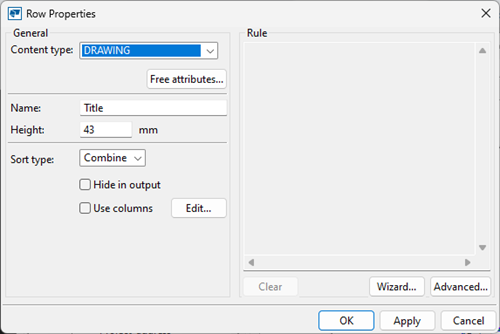 - Ancho y Altura: Definir en unidades gráficas. La opción de usar saltos de página si se supera la altura de página está seleccionada por defecto. Si no se selecciona, no aparecen saltos de página en la salida.