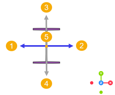 Rotación controla qué lado mira hacia la dirección X negativa.