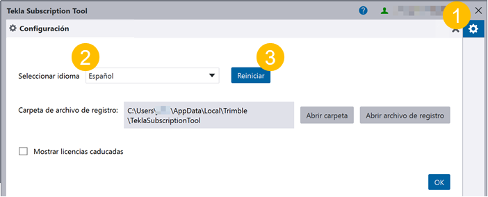 Cambiar el idioma de la interfaz de usuario de Tekla Subscription Tool