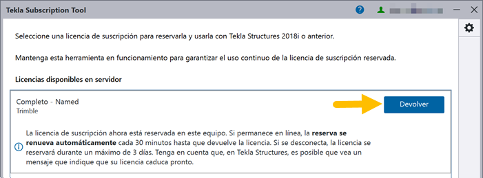 Devolver su licencia de suscripción con Tekla Subscription Tool