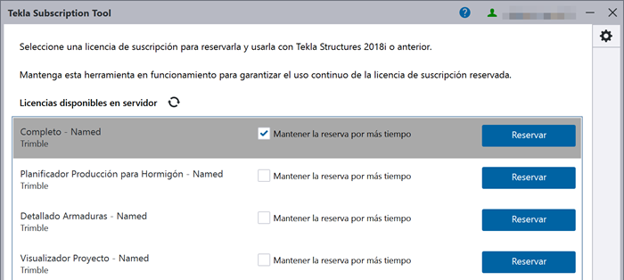 Reservar una licencia de suscripción con Tekla Subscription Tool