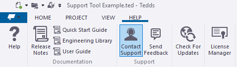 • From Tedds, click Help menu > Contact Support