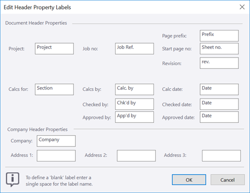 When you use a Tedds for Word calculation template, you can insert document details or company information in the header or footer, or modify the property labels in the header or footer according to your needs. To modify the header or footer using the Header properties dialog box. To modify the header or footer, see the following instructions.