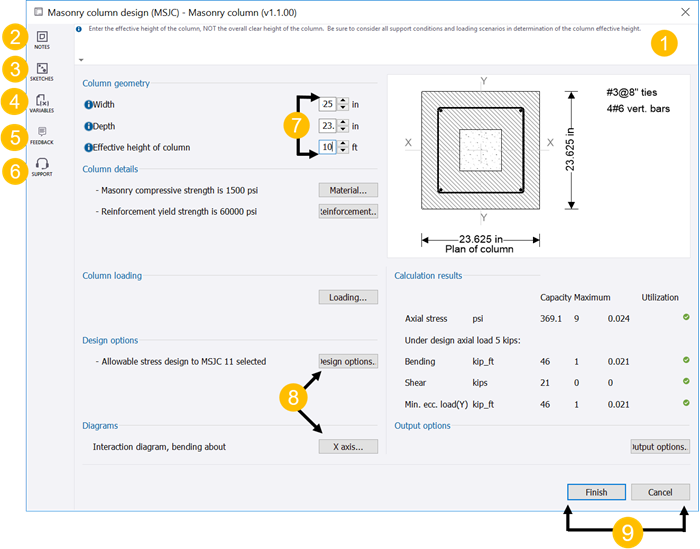 Once you have started calculating, all of the Tedds calculations share a similar style of interface. See important calculation interface details in the following paragraphs.