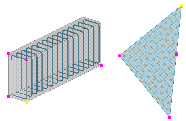 When you select a reinforcement, Tekla Structures highlights the handles. The handle of the first end point is yellow, the rest are magenta.