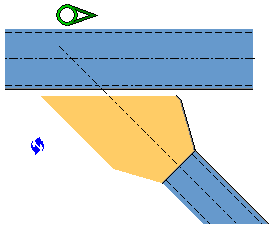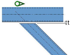 No new parts are created. The secondary part is adapted to the main part using a fitting and two line cuts. Use dimension d to define the distance to the center of the main part. Use dimension t to define the gap between the plate and the main part. |