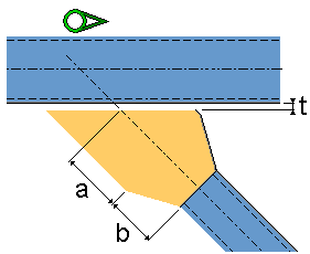 No new parts are created. The secondary part is shortened with a fitting. Optionally, the secondary part can be welded to the main part. Use dimension t to define the gap between the plate and the main part. |