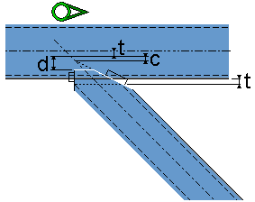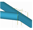 No new parts are created. The secondary part is adapted to the main part using a fitting and a line cut. Use dimension c to define an offset from the centerline of the main part (default value = 15 mm). Use dimension t to define the gap between the plate and the main part. |