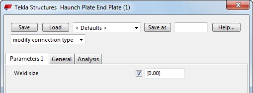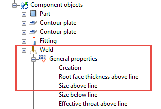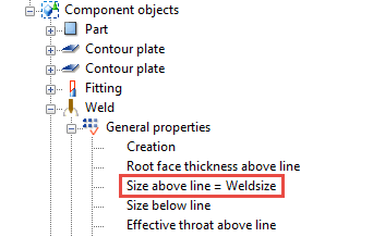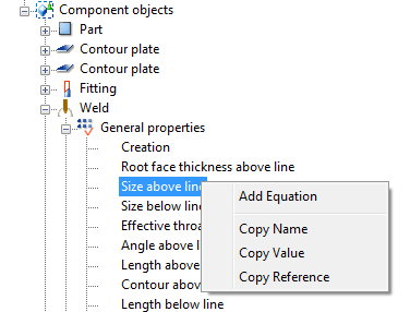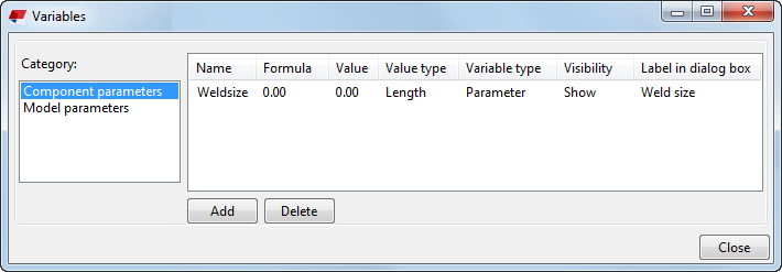 The following example shows how to create a variable that sets all welds in a custom component to a given size. After creating the variable, you are able to change the weld size directly in the custom component's dialog.