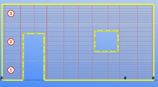 Create a polygon slab or a wall panel with any number of openings. Enter zone values to define the width of the area to be reinforced in both the longitudinal and crossing directions. Each direction can be divided up to five zones.