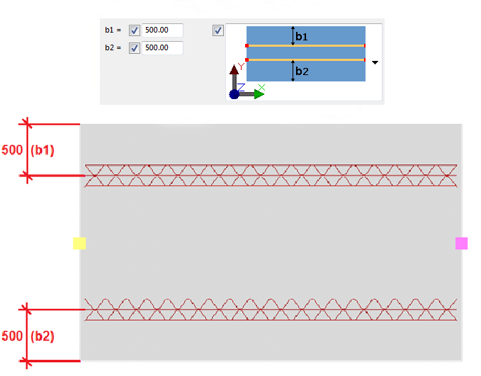 For some front view options, you can also define the distance of the reinforcing bars from the top and bottom of the connecting reinforcing bars.
