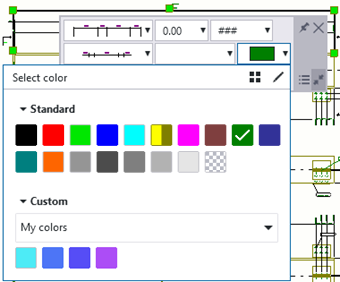 - Apply the defined custom colors to the drawing objects and to drawing templates using the saved color palettes.