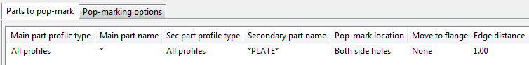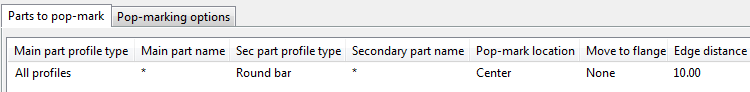 Tekla Structures only creates pop-marks for parts for which you have defined pop-mark settings. You can save the pop-mark settings in a .ncp file, which Tekla Structures saves by default in the ..\attributes folder under the current model folder.