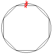 Curve detection controls whether three points should be read as a curve instead of two straight lines. When Curve detection is set to Yes, Tekla Structures checks the edges of a solid against a virtual curve described by the edges to see if the edges are curved or straight based on the Chord tolerance value. Enter the Chord tolerance value in millimeters. Curve detection is on by default. The image below describes the chord tolerance.