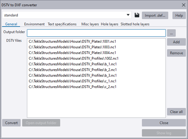 - opens the DSTV to DXF converter dialog.