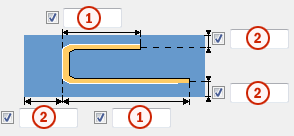 Select whether the U bars are created. In addition, on the Vertical U bars tab, you can select whether the vertical U bars are created using the same settings as the horizontal U bars. Same as horizontal and inside: vertical U bars use the same reinforcing bar settings and concrete cover value as the horizontal U bars, and the vertical U bars are placed so that they fit inside the horizontal U bars. Same as horizontal and outside: vertical U bars use the same reinforcing bar settings and concrete cover value as the horizontal U bars, and the vertical U bars are placed outside the horizontal U bars. |
