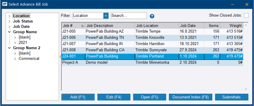 La boîte de dialogue Sélectionner une liste d'appro d'affaire s’ouvre. Vous pouvez afficher toutes les affaires existantes.