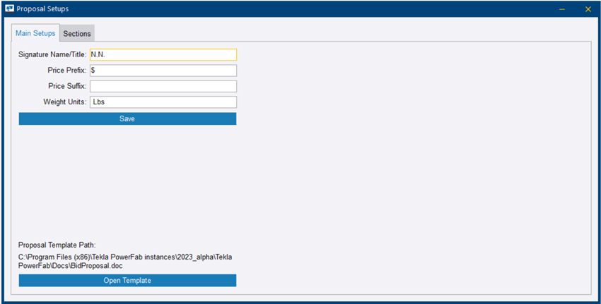 Notez que toute modification apportée au document de proposition en dehors de Tekla PowerFab n’est pas disponible dans Tekla PowerFab.