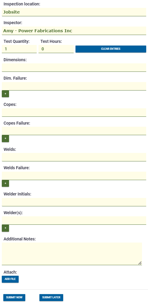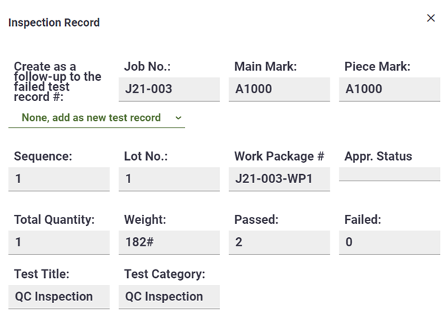 Ajouter des enregistrements de test d’inspection spécifiques à l’affaire dans Tekla PowerFab Go