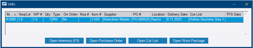 Après avoir généré la mise en tôle dans Shop Data Systems Extension PeddiNest pour Tekla PowerFab, vous pouvez afficher les résultats dans Tekla PowerFab Contrôle de production, Inventaire et Demandes de prix.