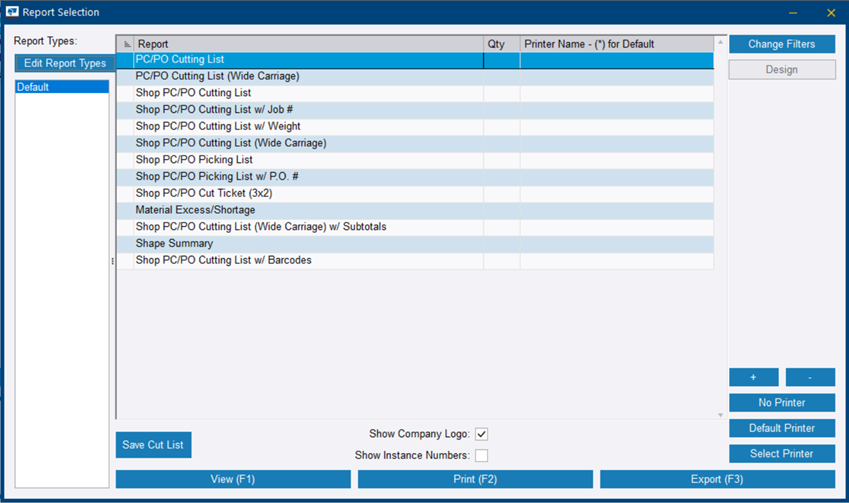 Pour enregistrer la liste de coupes, dans la boîte de dialogue Sélection de rapports, cliquez sur Sauvegarder liste de coupes.