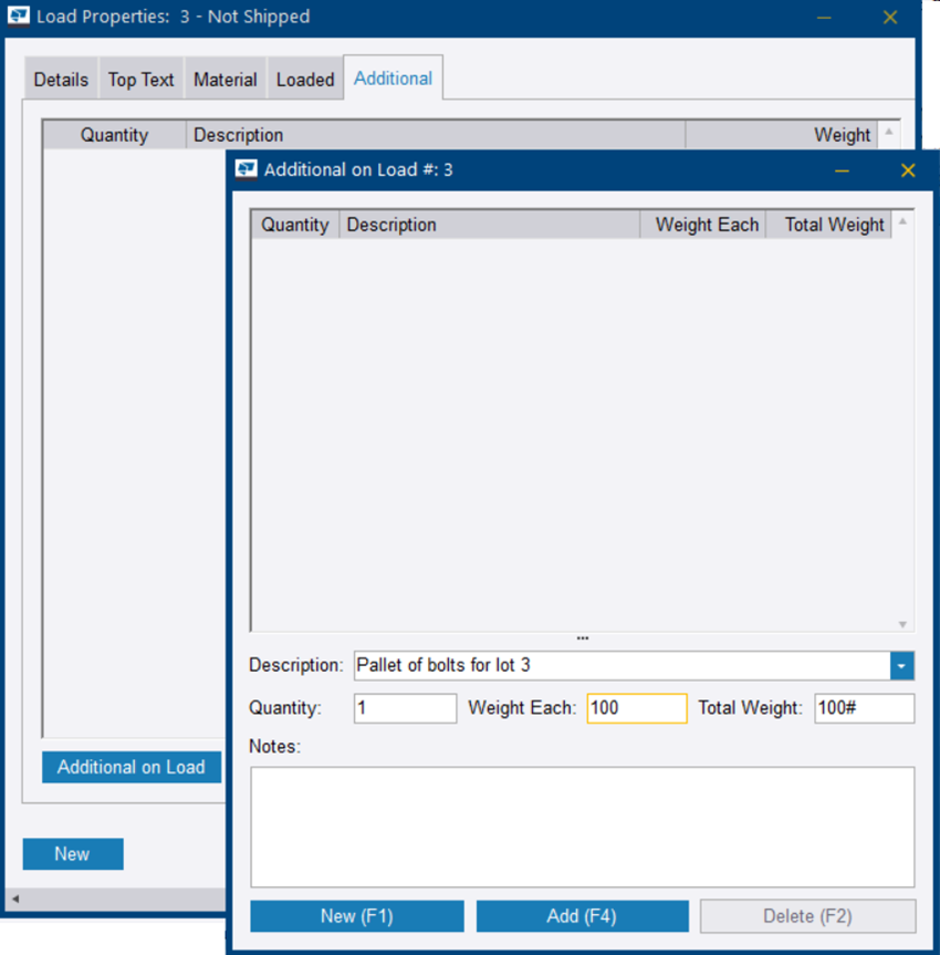Vous pouvez ajouter et modifier les propriétés de chargement et les articles de sous-traitance aux bons de commande dans la Propriétés du chargement boîte de dialogue.