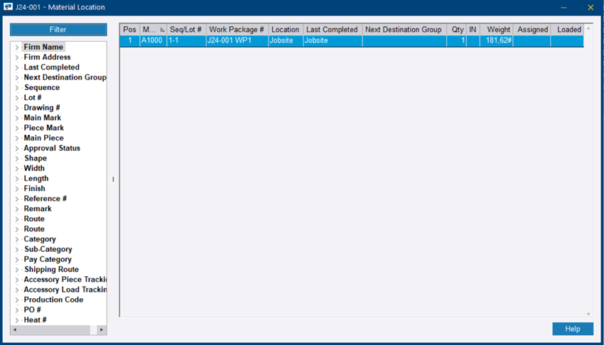 Emplacement: Le nom de l’entreprise dans laquelle se trouve actuellement la matière. Atelier si la matière a été retournée à l’atelier. Chantier si la matière a été expédiée sur le chantier.
