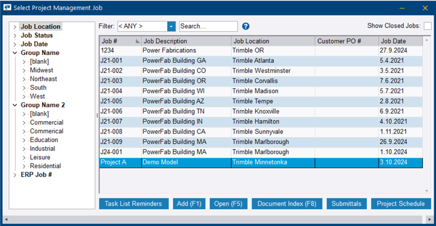 En haut de la fenêtre Tekla PowerFab, cliquez sur le le bouton Gestion de projet.