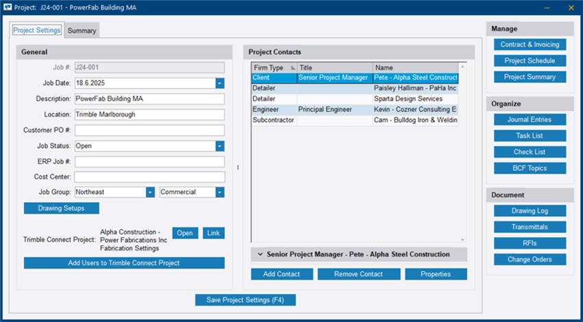 Dans l’onglet Paramètres du projet, vous pouvez ajuster les détails du projet et les contacts.