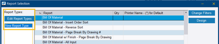 Vous revenez à la boîte de dialogue Types de rapport.
