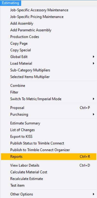 Vous pouvez accéder à la plupart des rapports via le menu de l’onglet ruban actif dans le module que vous avez ouvert. Ces rapports ont tendance à être destinés à un chiffrage spécifique, un bon de commande et un travail de production, par exemple.