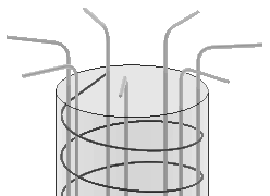 Poteau en béton rond avec des fers principaux droits dépassant du poteau ou complètement à l'intérieur du poteau. Cadres séparés. Le haut du poteau est ferraillé. |