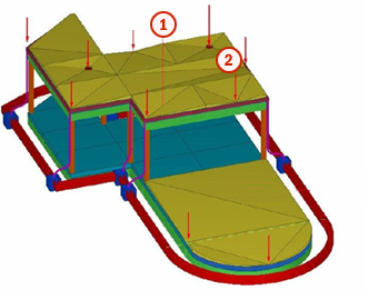 Les évacuations avec la noue 1 et l'arêtier 2 sont créés. |