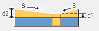Sélectionnez comment la dalle est inclinée, par une combinaison de la pente (S) ou du pourcentage de pente (S%), et les épaisseurs de la chape (d1, d2). Les options Pente, d1 et d2 sont disponibles en conséquence. |