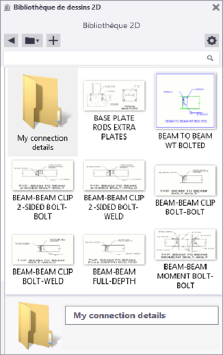 La Bibliothèque de dessins 2D se trouve dans le panneau latéral de Tekla Structures. Elle est également disponible lorsqu'un dessin est ouvert.