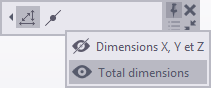 Contrôler la visibilité des dimensions de modification dynamique. Cliquez sur le symbole en forme d'œil pour afficher ou masquer les dimensions.