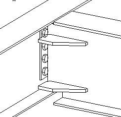 Attache avec une platine et des raidisseurs. La poutre secondaire est inclinée. |