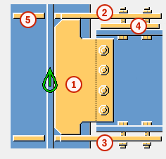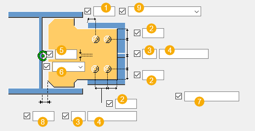 Le composant Encastrement boulonné (134) permet de relier une poutre à l'âme ou à l'aile d'un poteau. Le plat de cisaillement est soudé sur l'âme ou sur l'aile de la pièce principale et boulonné sur l'âme de la pièce secondaire. La pièce secondaire peut être au même niveau ou inclinée et/ou biaise.