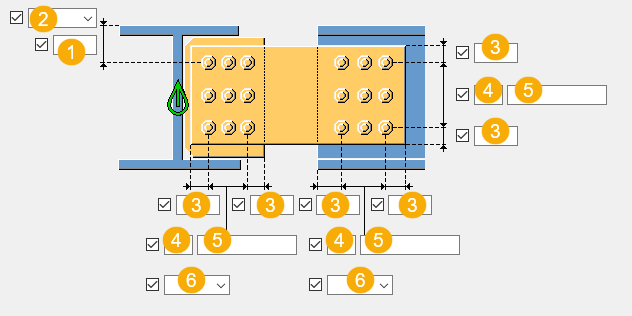 Ecartement des boulons. Utilisez un espace pour séparer les valeurs d'écartement des boulons. Entrez une valeur pour chaque écartement entre les boulons. Par exemple, s'il y a trois boulons, entrez deux valeurs. |