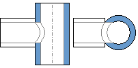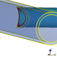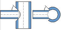 Trou calé uniquement Crée également un trou sur la pièce principale qui correspond au diamètre intérieur du tube secondaire. La pièce secondaire n'est modifiée en aucune sorte. Aucune préparation de soudure n'est créée au cours du traitement CN. |
