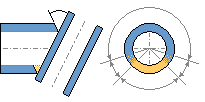 Sabot de raboutage Génère un chanfrein arrière au cours de la création du fichier CN du tube. Aucun chanfrein biais n'est créé dans le modèle. |