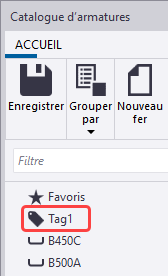 Si vous avez des définitions avec étoiles, la boîte de dialogue Catalogue d’armatures s'ouvre avec le groupe Favoris sélectionné.