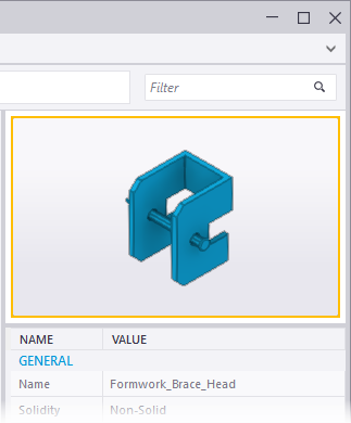 Dans les boîtes de dialogue Catalogue de formes et Sélectionner la forme, Tekla Structures affiche un aperçu de la forme sélectionnée dans l’angle supérieur droit de la boîte de dialogue.